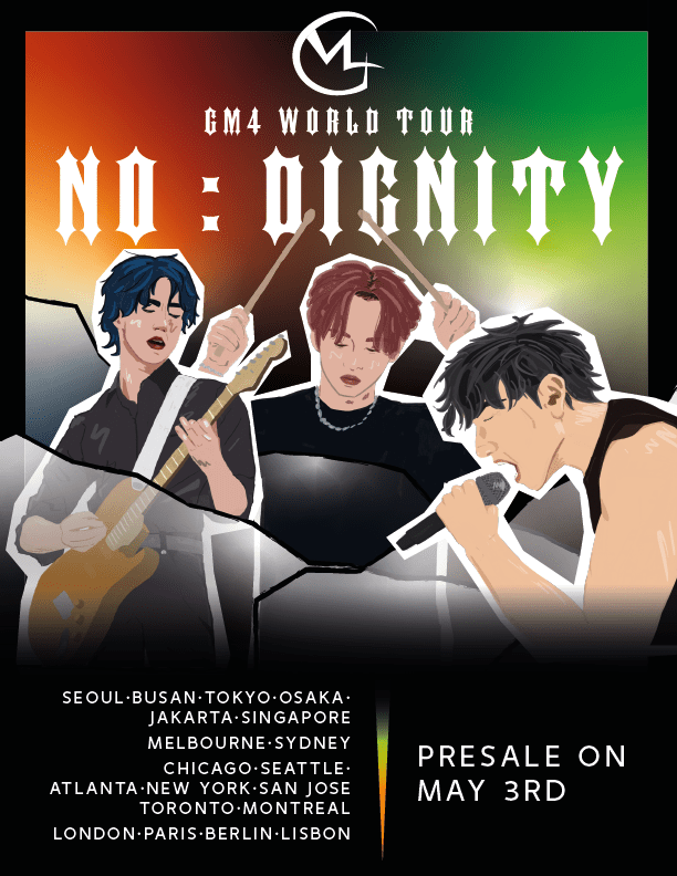 Project created for a graphic design course. I had to create the logo, graphic guide and advertisement poster for the group. The fictional group’s identity is inspired by Kpop group Stray Kids and metal bands such as Kiss and Metallica.